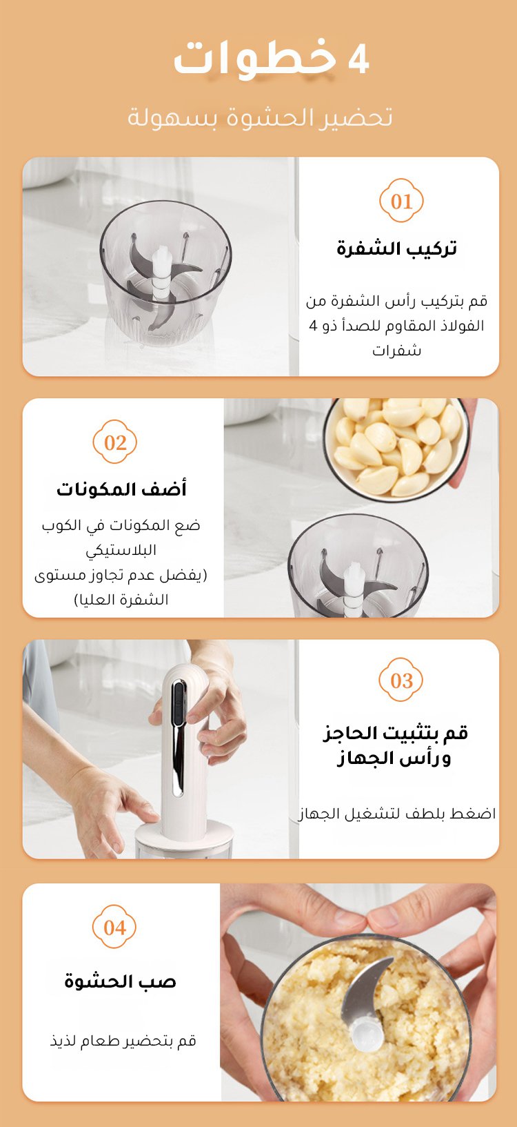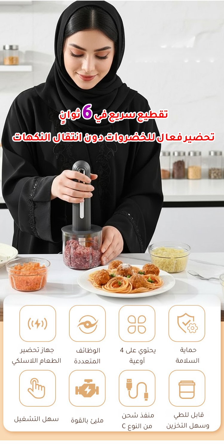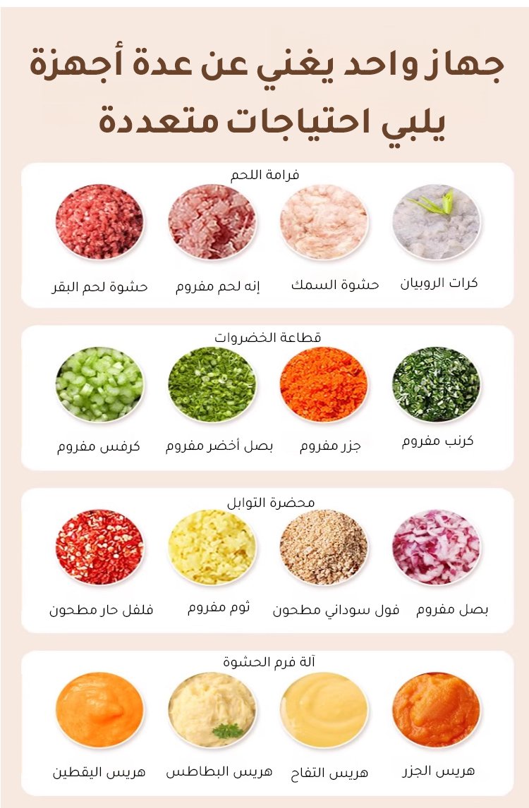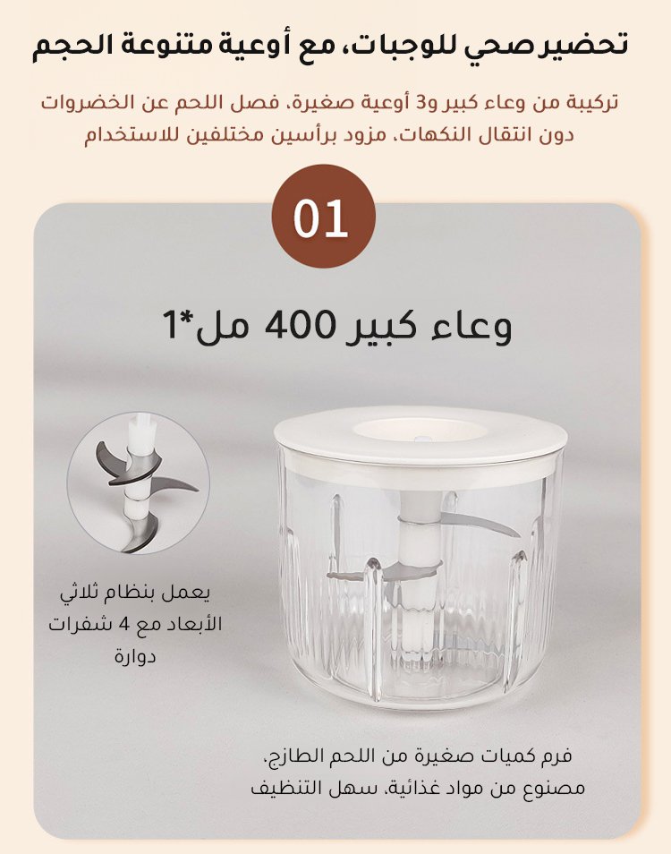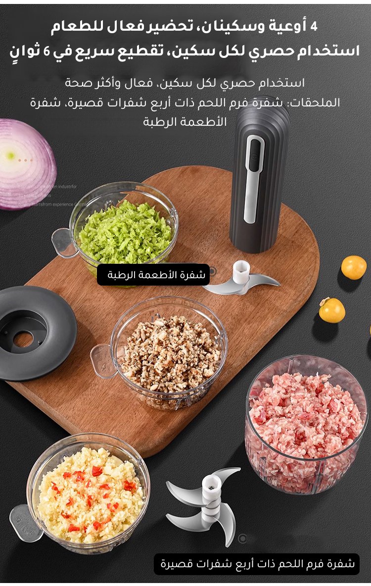 【4 أوعية وسكينان، تقطيع سريع في 6 ثوانٍ】جهاز تحضير الطعام الصغير للمطبخ